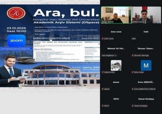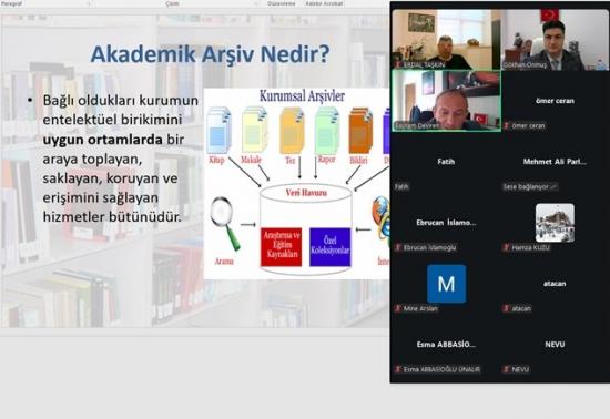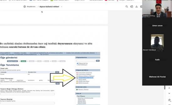 - Üniversitemiz Akademik Arşiv Sistemi (DSpace) veri girişi eğitimi gerçekleştirilmiştir.