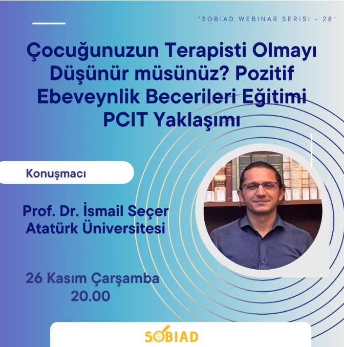 Sobiad Atıf Dizini tarafından ''Çocuğunuzun Terapisti Olmayı Düşünür müsünüz? Pozitif Ebeveynlik Becerileri Eğitimi PCIT Yaklaşımı'' webinarı düzenlenecektir.