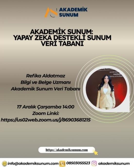 17 Aralık Çarşamba Günü, Akademik Sunum: Yapay Zeka Destekli Sunum Veri Tabanı eğitimi gerçekleştirilecektir.
