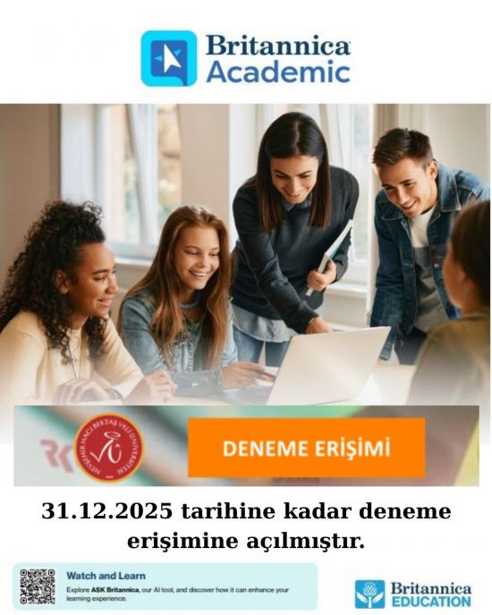 - Britannica Academic Online 31.12.2025 tarihine kadar üniversitemiz deneme erişimine açılmıştır.